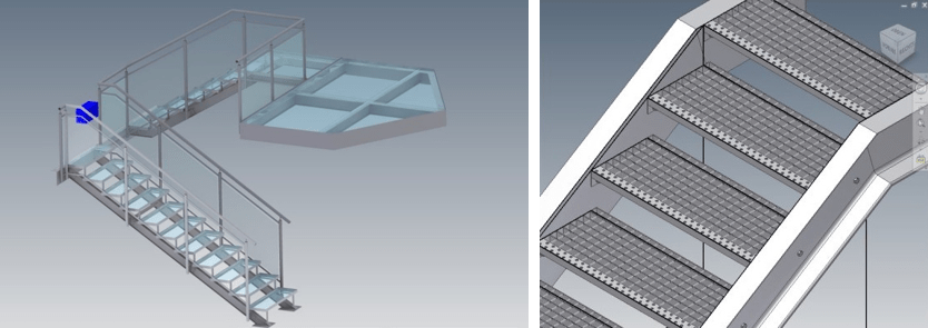 Passen Sie stahlbautypische Treppen nach Ihren Parametern an, planen oder konstruieren Sie neu. Ihre individuelle Ausführung wird als Inventor Baugruppenstruktur erzeugt und kann z.B. als Vorlage genutzt werden.